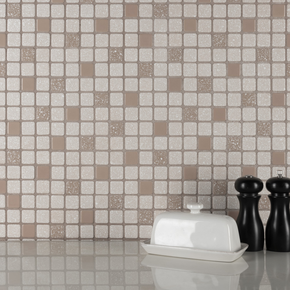 Crystalline Square Beige 12 in. x 12 in. Porcelain Mosaic Tile