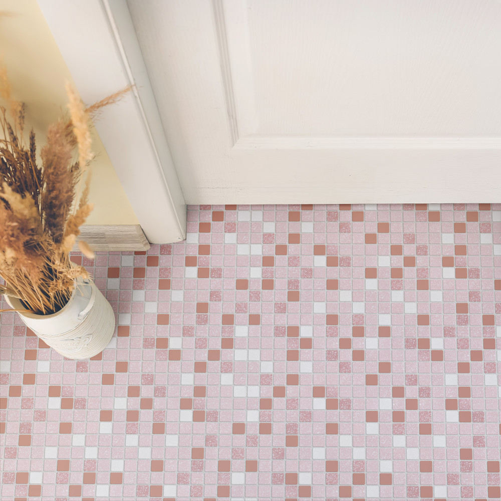 Crystalline Square Pink 12 in. x 12 in. Porcelain Mosaic Tile