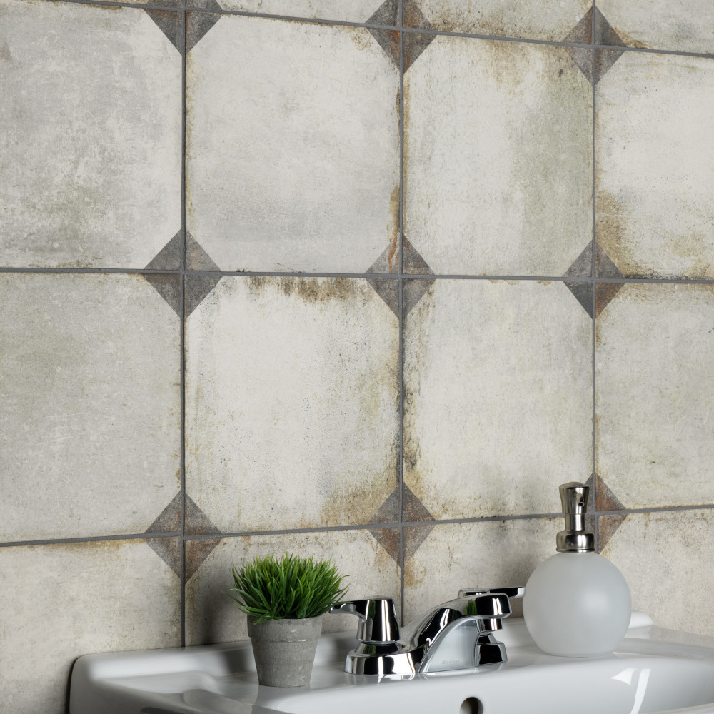 Creating a world of instant antique charm, our expansive D’Anticatto collection offers a curated variety of well-loved looks to effortlessly fill a space and add classic detailing. Three D’Anticatto designs start from the corners, adding subtle decor that plays with shape, and highlights signs of wear. Three in black and white invite sharp contrast in bold stripes and checkerboard patterns, and three come straight from antiquity, sharing repeat motifs in earthy tones, complete with the markings and imperfections of a life lived. To complement these decorative delights, matching plain variants in worn white and aged terracotta add variety in their simplicity.