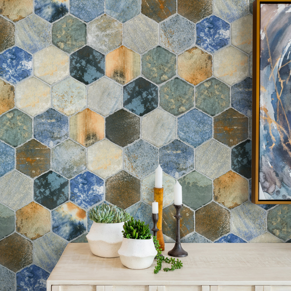 Dorne Hex Mix 8-5/8 in. x 9-7/8 in. Porcelain Floor and Wall Tile