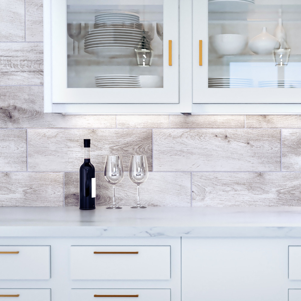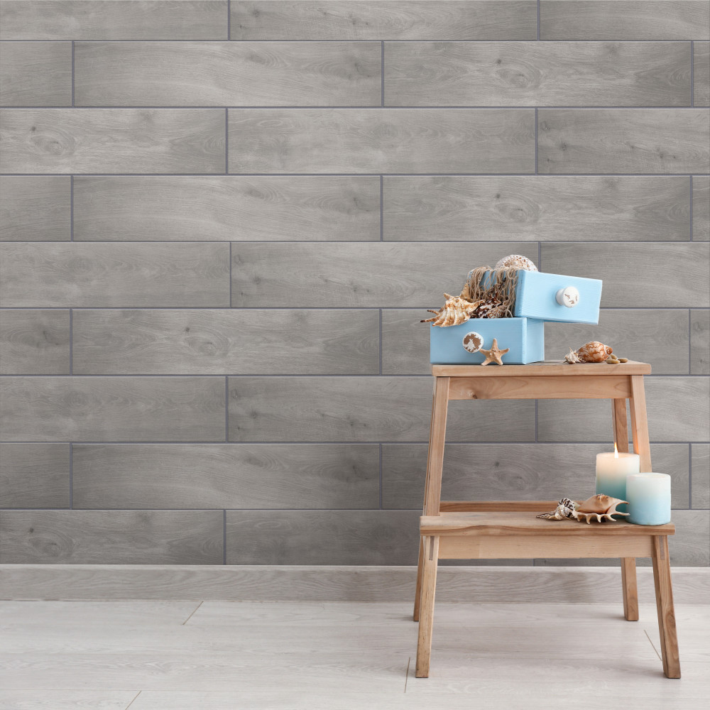 Intentionally directional woodgrains highlight the contrast in the paired wood-tones of Ella Hill Amberes, while maintaining a sense of movement throughout. Rotating the tiles creates a repeat motif perfect for adding subtle detail that looks beyond the obvious. The tiles have a flat, matte finish that provides a calm aura, magnified by warm grayscale neutral colors.