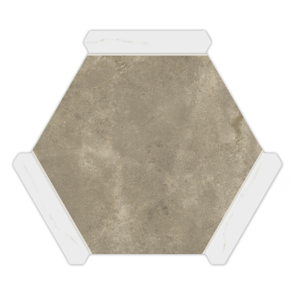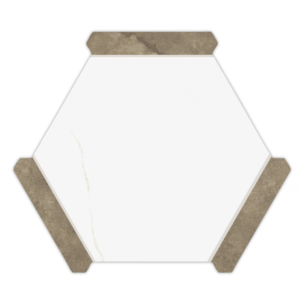 Marcotto Panal features an emotionally inspiring combination of classic Calacatta Gold white marble and rich terracotta. The design featuring a white marble hex framed with a cotto picket is restrained, elegant, and luxurious. In reverse, with a cotto hex framed with a Calacatta Gold picket, the design is more earthy, rustic, and rooted. Because this porcelain tile is suitable for wall or floor use, Marcotto Panal offers fresh design options, such as mixing up the different design options in the same room.