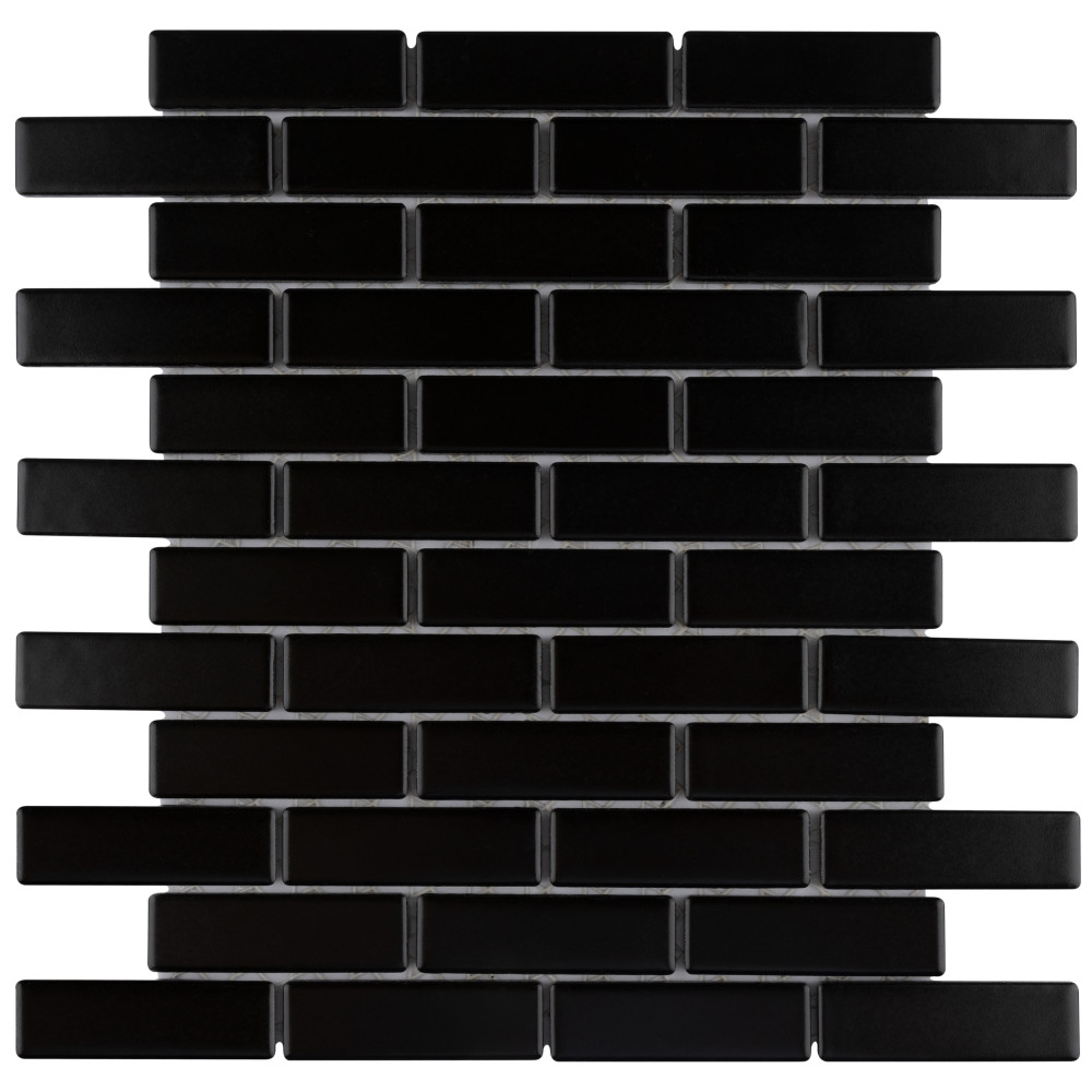 Metro Brick Subway Matte Black 11-1/2 in. x 11-3/4 in. Porcelain Mosaic Tile