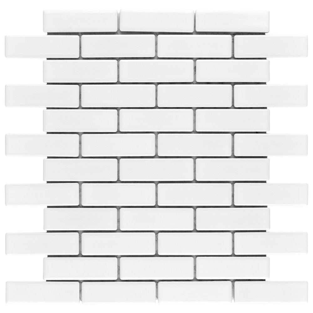 Metro Brick Subway Glossy White 10-1/4 in. x 11-1/2 in. Porcelain Mosaic Tile