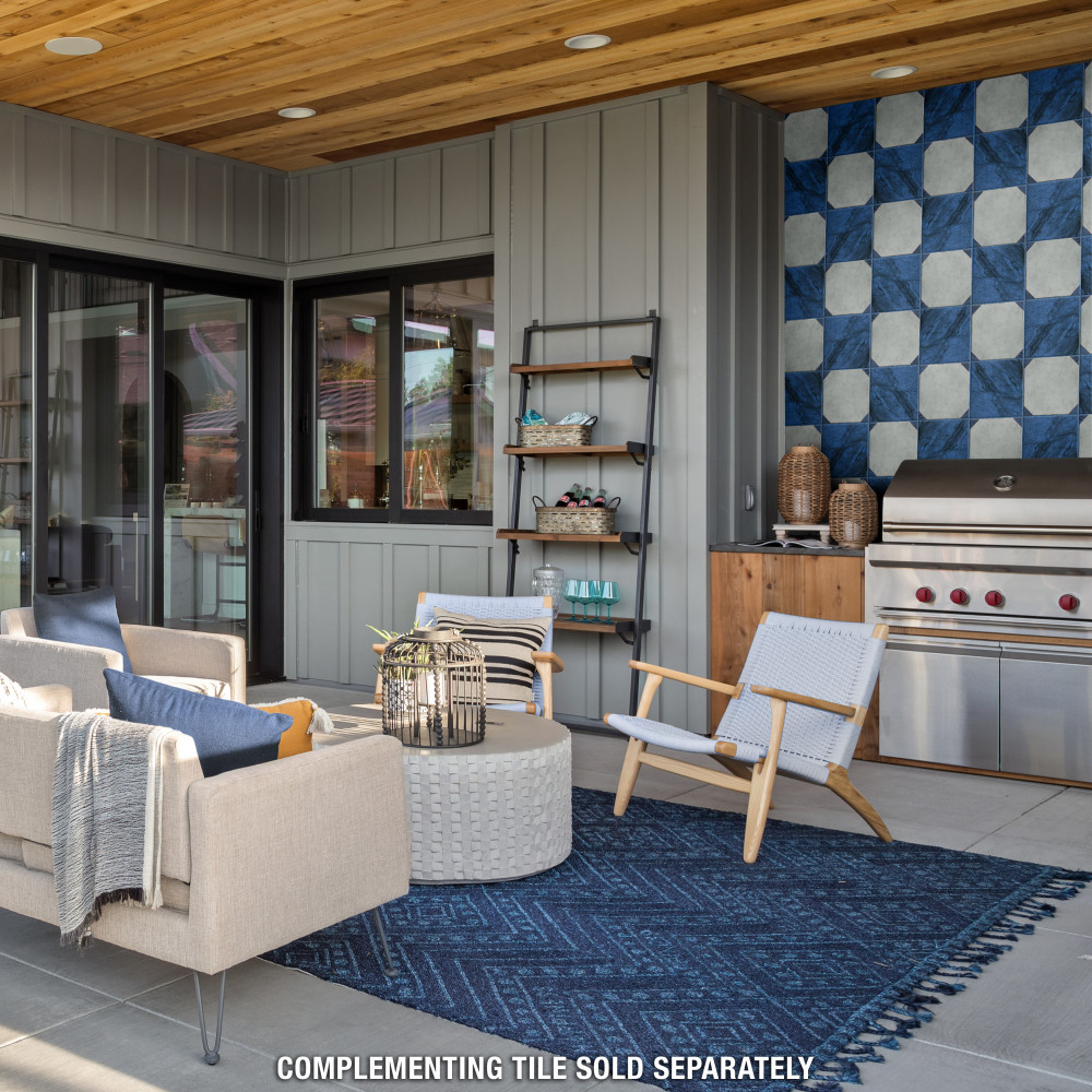 Renaissance Deco Indigo Mandorla 7-7/8 in. x 7-7/8 in. Porcelain Floor and Wall Tile