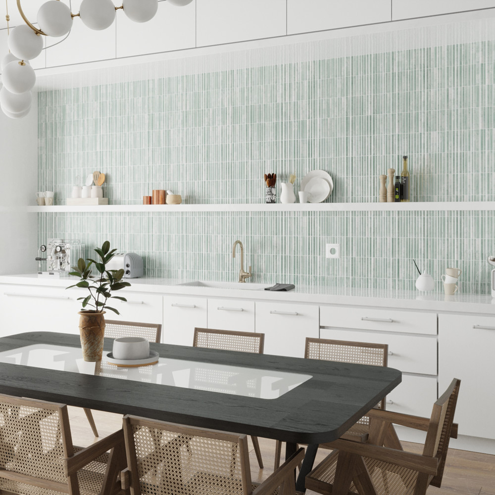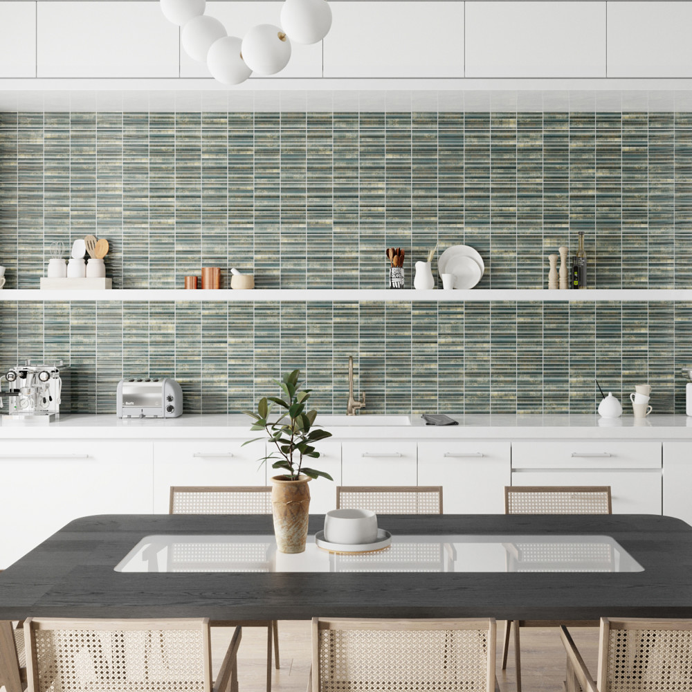 Offering the cherished look of a Japanese reactive glaze, and a striking fluted form, the Rubik collection is vibrant, vivid, and eye-catching. Perfect for creating a dramatic kitchen backsplash or one-of-a-kind shower, Rubik’s iconic 3D linear look brings to mind bamboo canes.
