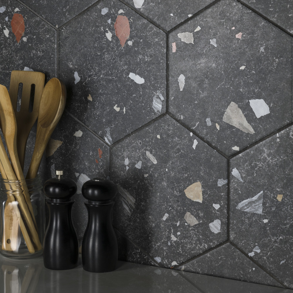 Sonar Hex Black 8-5/8 in. x 9-7/8 in. Porcelain Floor and Wall Tile