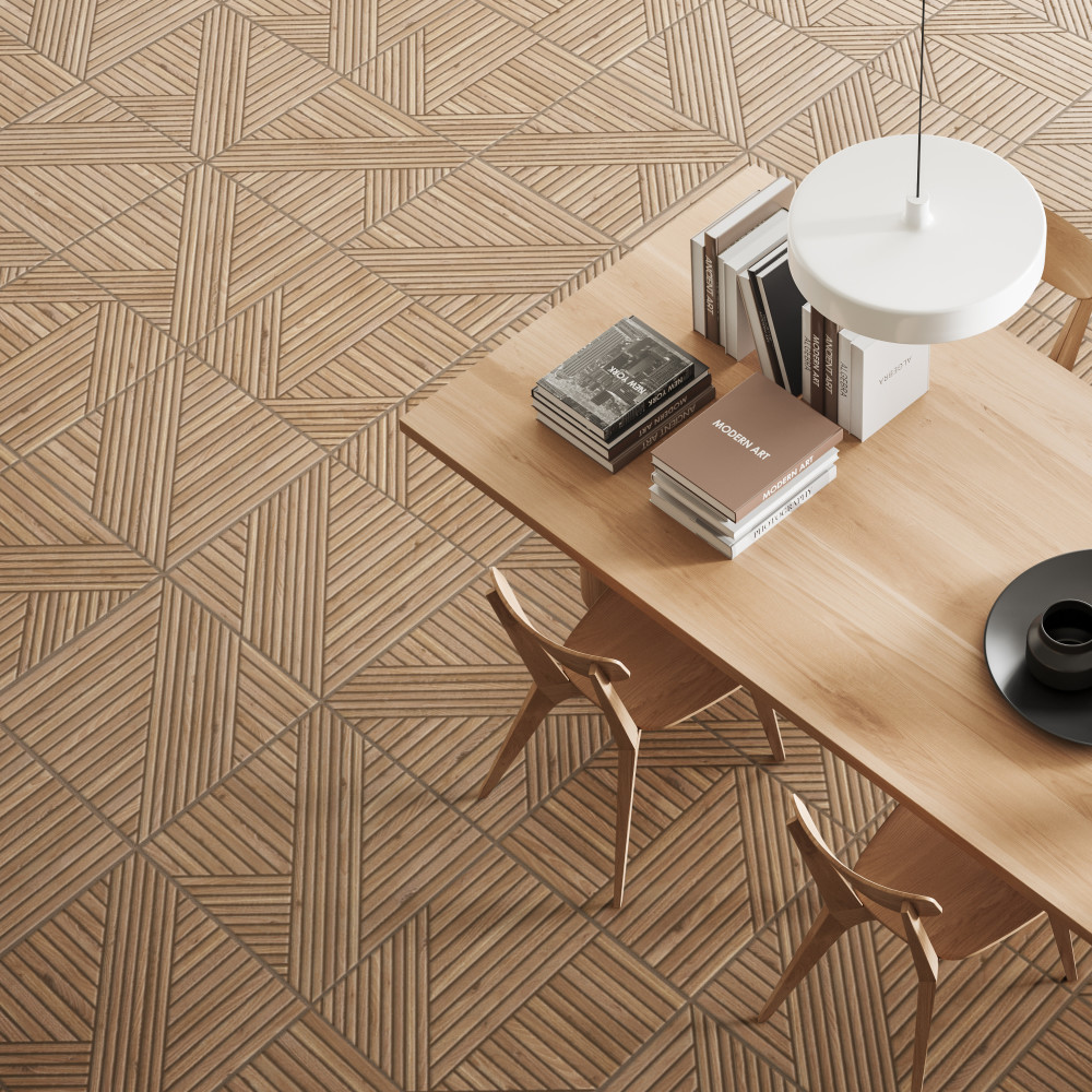 Tangram Wood Oak 17-3/8 in. x 17-3/8 in. Porcelain Floor and Wall Tile