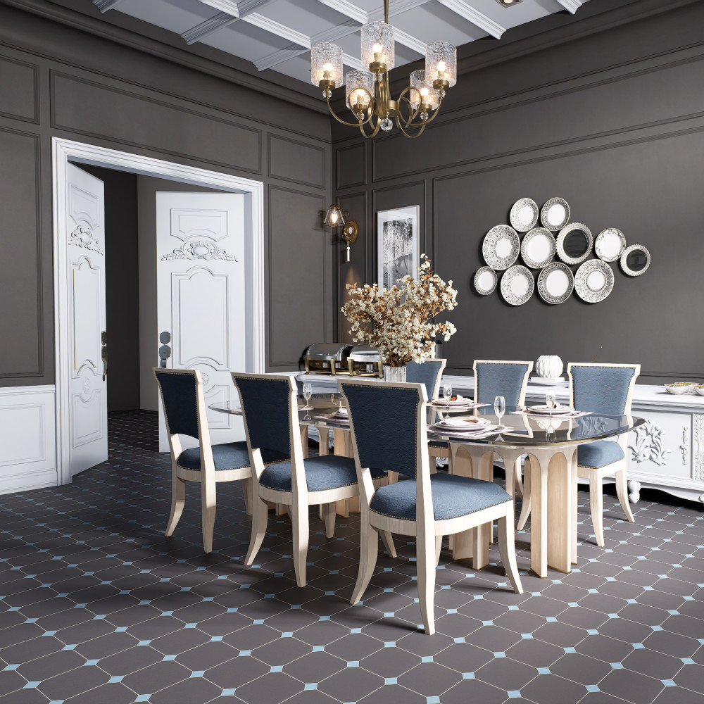 Vaudeville Octagon Antracita with Taco Azzuro 7-7/8 in. x 7-7/8 in. Porcelain Floor and Wall Tile