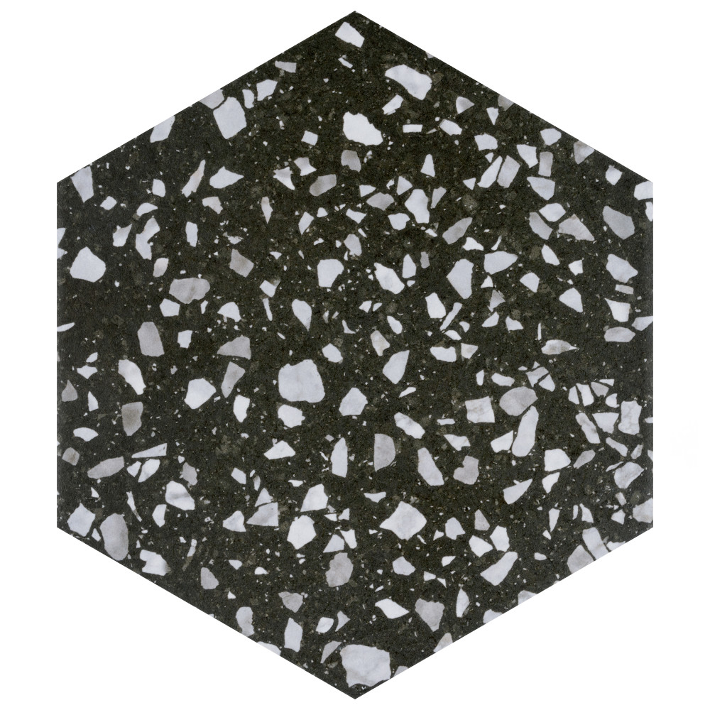Venice Hex Black 8-5/8 in. x 9-7/8 in. Porcelain Floor and Wall Tile