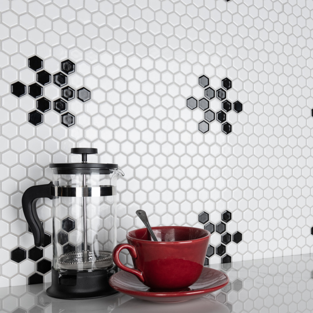 Metro 1″ Hex Glossy White w/Snowflake 10-1/4 in. x 11-7/8 in. Porcelain Mosaic Tile