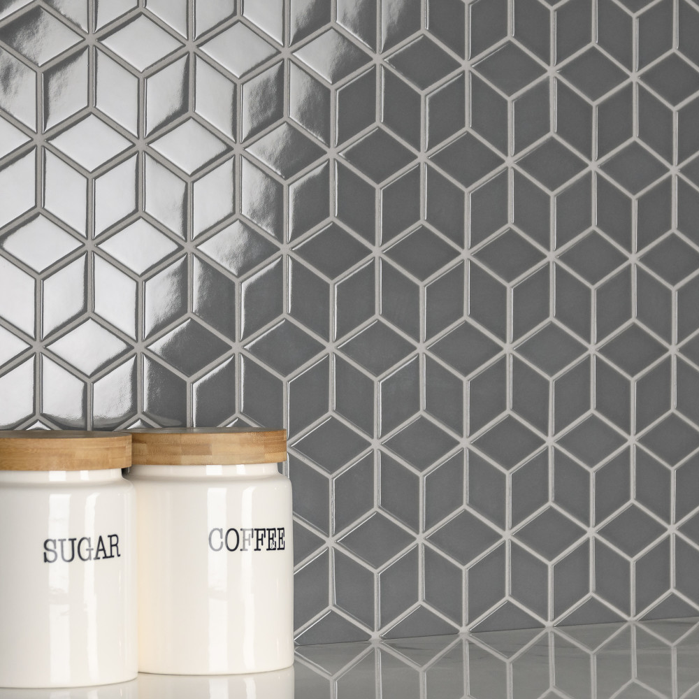 Metro Rhombus Glossy Grey 10-1/2 in. x 12-1/8 in. Porcelain Mosaic Tile