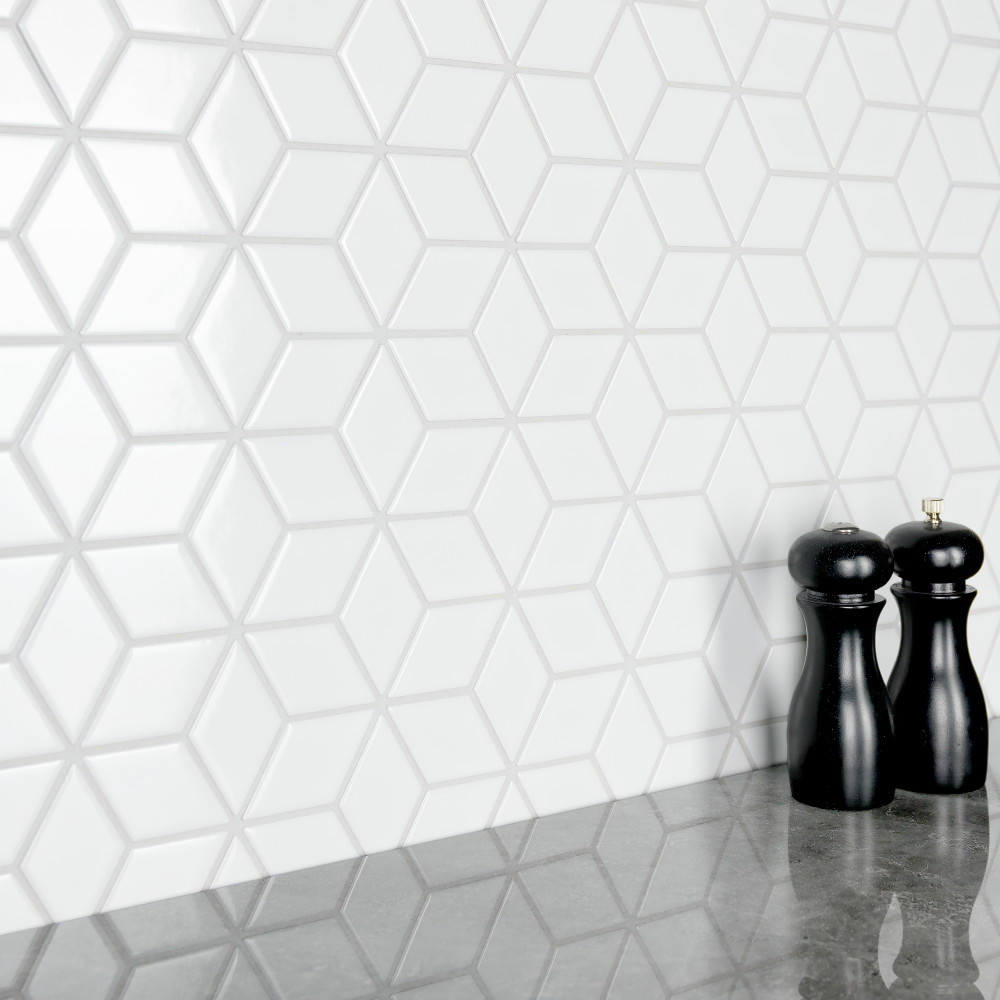 Metro Rhombus Glossy White 10-1/2 in. x 12-1/8 in. Porcelain Mosaic Tile